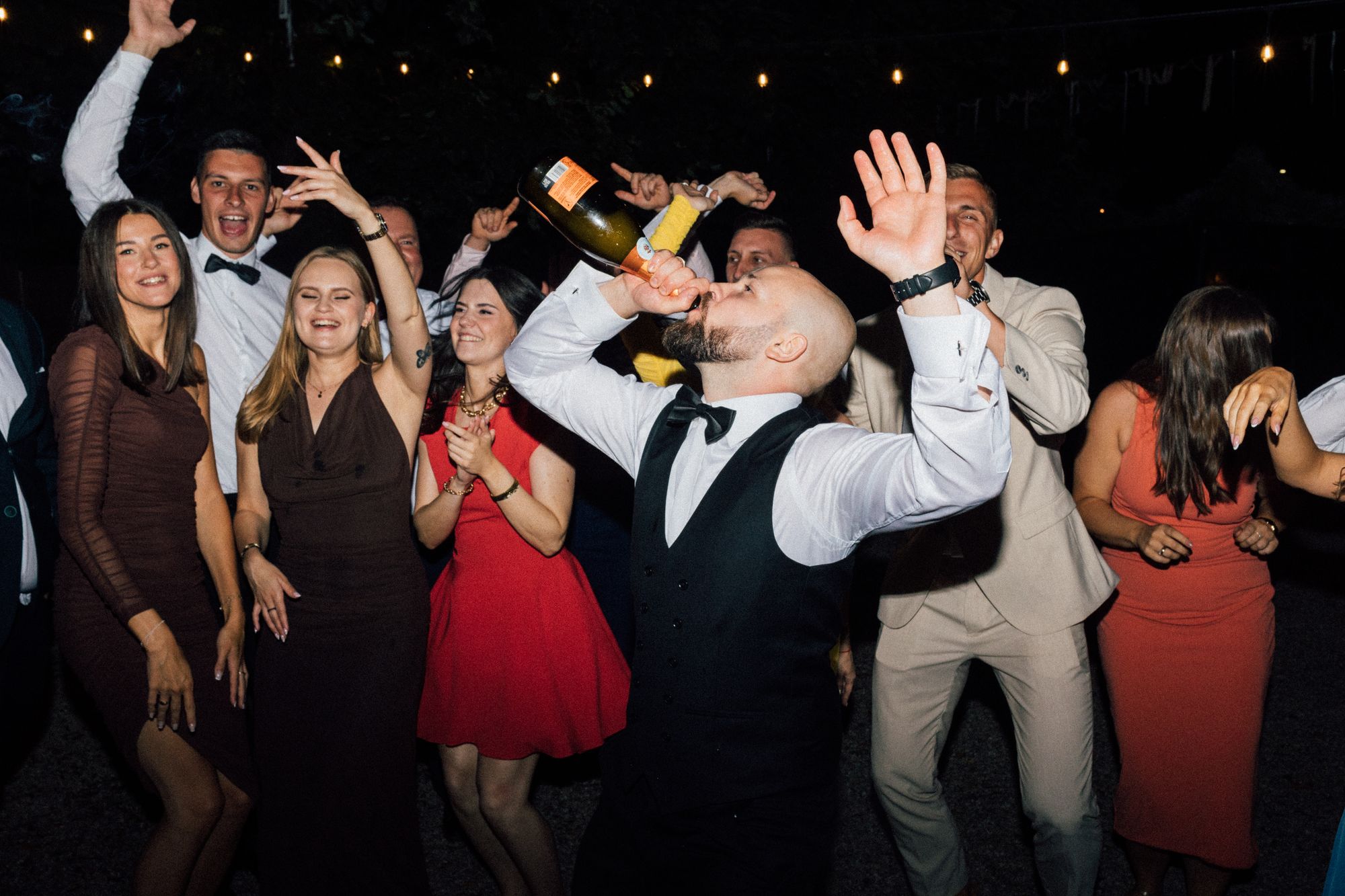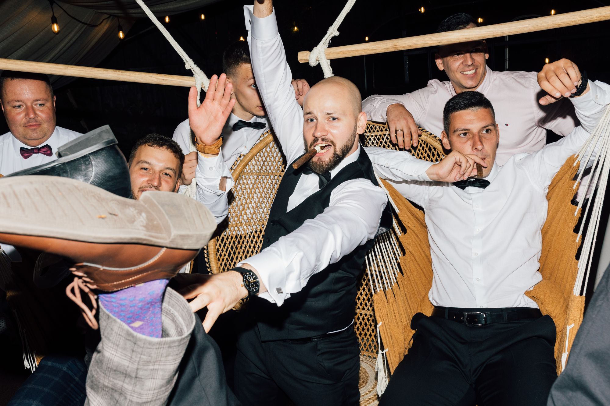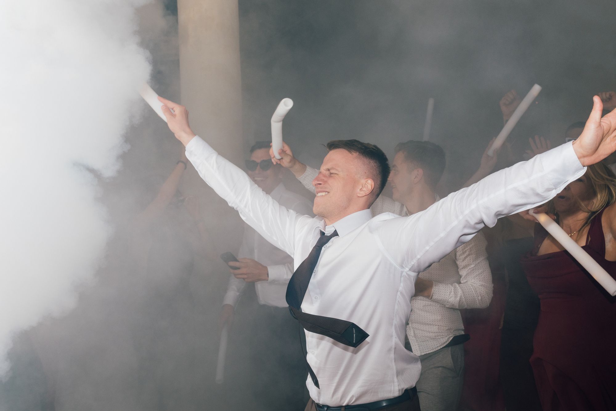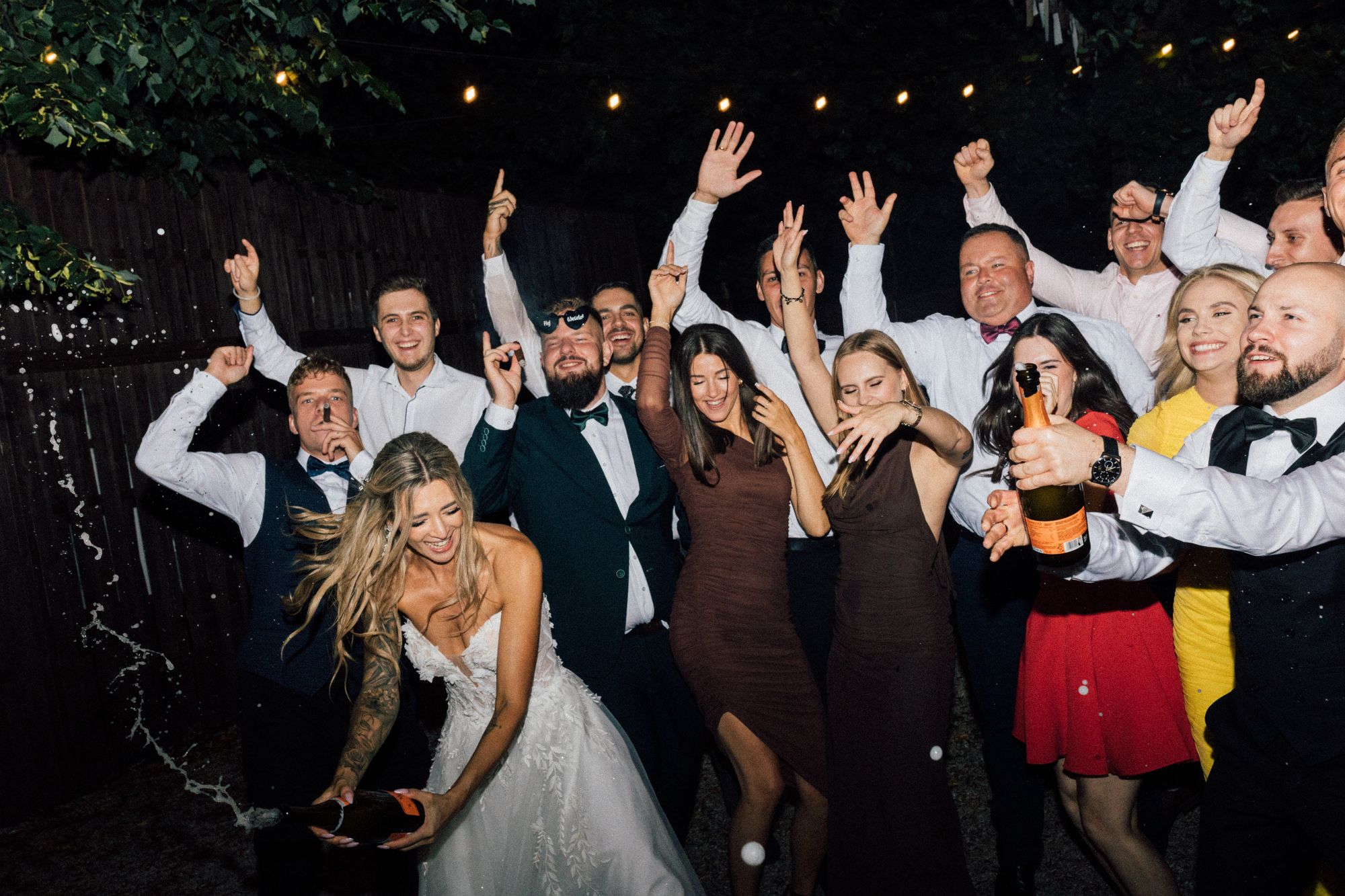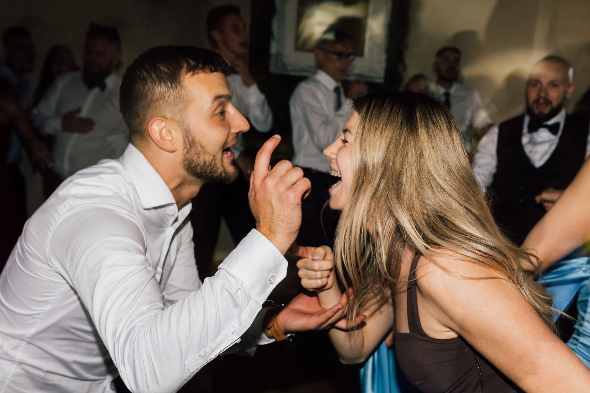 Klimat rustykalnej przestrzeni stodoły został podkreślony przez świadome kadry pełne detali – światło tańca, śmiech gości, zabawne gesty i prawdziwe uśmiechy. To fotografia ślubna z charakterem, która opowiada historię bez sztucznego pozowania, skupiając się na autentyczności i energii wydarzenia.